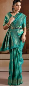 Handloom Weaving Silk Teal Green Saree for Wedding Party
